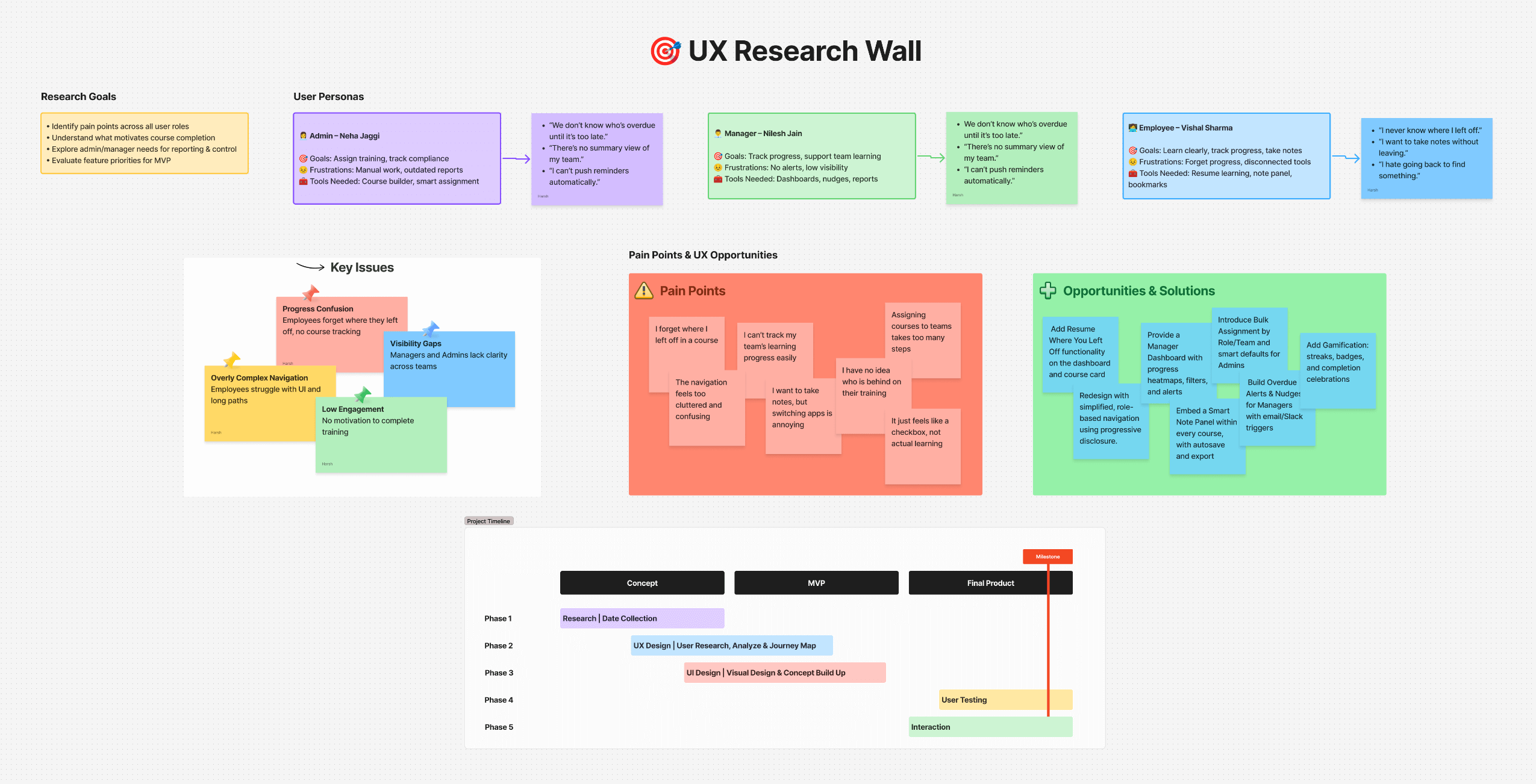 Employees struggled to stay motivated, while managers had limited visibility into team learning. Admins faced clunky tools that made assigning training and tracking compliance a manual, error-prone process. We needed to rebuild trust in the system—by putting usability, personalization, and control at the center of the experience.